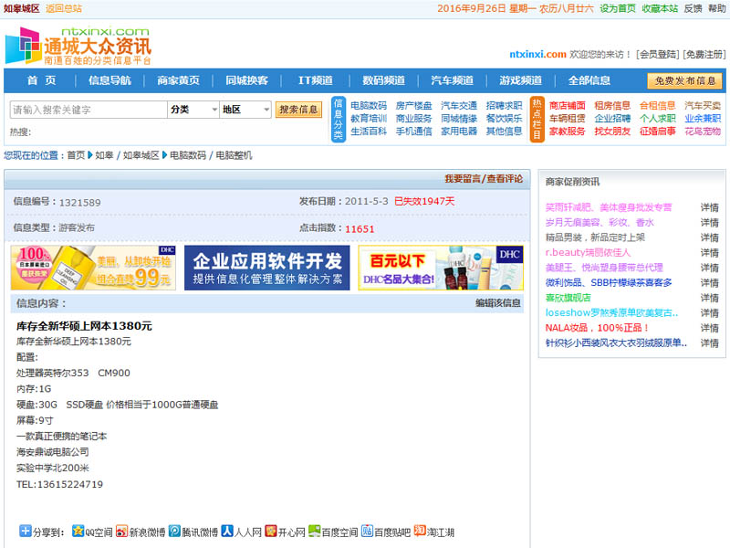 通城大众资讯是服務(wù)于南通地區(qū)的生活类分(fēn)类信息网站,同时分(fēn)县级市子站,网友可(kě)以自行发表供需信息,内容需要经过管理(lǐ)员审核,网站还开辟了汽車(chē)、科(kē)技、金融等子站。